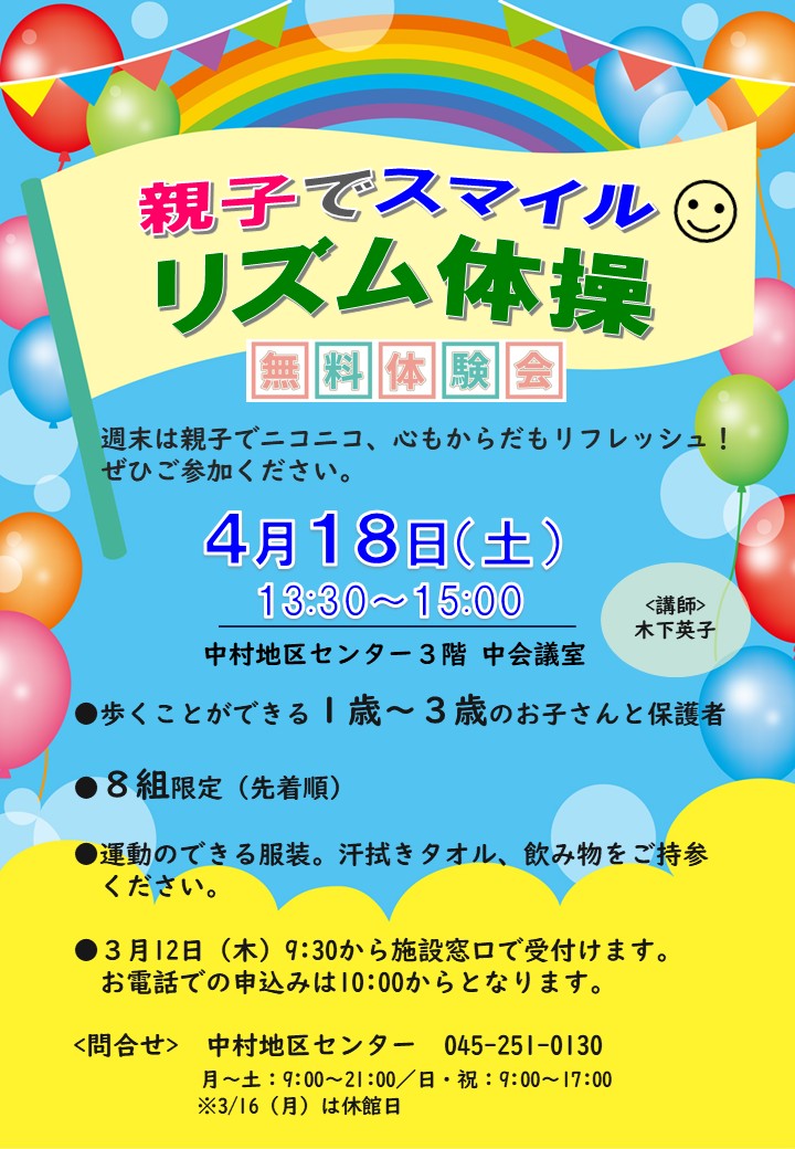 【3月募集】親子でスマイル!リズム体操